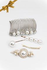 #H07 Pearly Set: Large Comb, barrettes, and bobby pins.