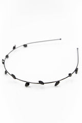 • A refined headband accented with crystal leaves, offering a soft, luminous shimmer that feels both elegant and timeless.