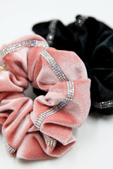 - An oversized velvet scrunchy with embellished flat stones for THE updo statement piece. A glamourous take on your ponytails, buns, half-ups, updos!