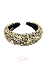 • The Wycliff Headband could also be called a crown, thanks to its fully crystal-encrusted surface. Despite its considerable embellishment, this headband is lightweight and flexible;