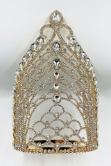 Adorned with radiant Swarovski crystals, this crown captures and reflects the essence of grandeur. The crystals are arranged to create a dazzling display, ensuring that every head-turn is met with a shimmering spectacle that befits the queenly grace of the wearer.