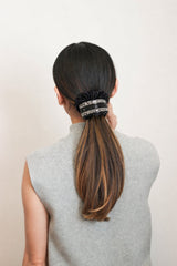 - What sets it apart are the decorative crystals attached to the outer layer of the scrunchie, adding a touch of sparkle and elegance to your hairstyle.