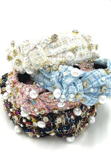 - This exquisite fabric headband features a delicate design adorned with shimmering pearls, adding a touch of elegance to any outfit. Crafted from soft, durable fabric, it offers a comfortable fit for all-day wear. The pearls are artfully placed along the band, creating a beautiful contrast against the fabric and catching the light with every movement. Perfect for both casual and formal occasions, this headband is a chic accessory that effortlessly elevates your look, making it an essential addition to your collection. Whether worn for a special event or a stylish everyday accessory, it’s sure to make a statement!