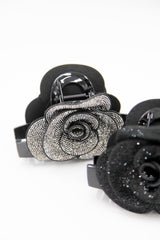 - Notes of romance, glam, and fashion combined to create our large Twin Rose hair jaw. A fully bloomed rose design adorned with crystals in every soft petal is featured on both sides of the jaw's body.