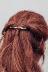 - This thin and lightweight barrette is embellished with mini blossoms; aligned symmetrically for every-day wear.