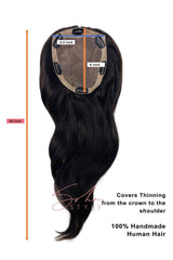 This handcrafted Godiva Volume Topper is made from 100% Remy human hair and meticulously embroidered hair by hair to allow a natural, multidirectional part, making the six snap-on clips virtually invisible. Designed to deliver instant volume and a more youthful appearance, Godiva can be cut, heat-styled, and customized to seamlessly complement your natural hair or add body and fullness.