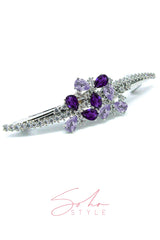 • This barrette typically features a flower-shaped design, adorned with ruby-colored stones. The stones add a rich and regal touch to the barrette, creating a luxurious and captivating look.