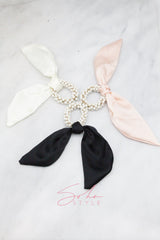 - Let your hair make a statement with this silky pearl scrunchy design.