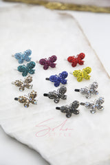 A mini magnet barrette embellished with fine crystals.