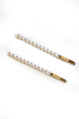 Classic features on a modern silhouette, our pearl and gold hair bobby pin adds just the right touch to a sleek side part or half-up style.