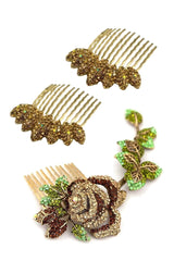 This set comes with: 1 Rose Hair Comb & 2 Almond Cluster Combs